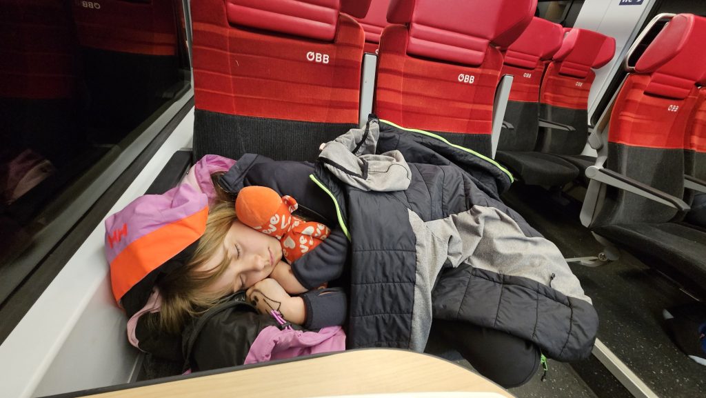 Krizový plán: S krosnami, lyžemi a desetiletou dcerou jsme se ocitli na peróně ve Vídni. Naštěstí za 25 minut jel RailJet 1152 směr Villach. Stačilo zachovat klid, rychle se zorientovat a naskočit. Přípoj v Brucku jsme stihli!