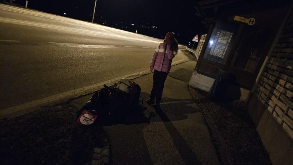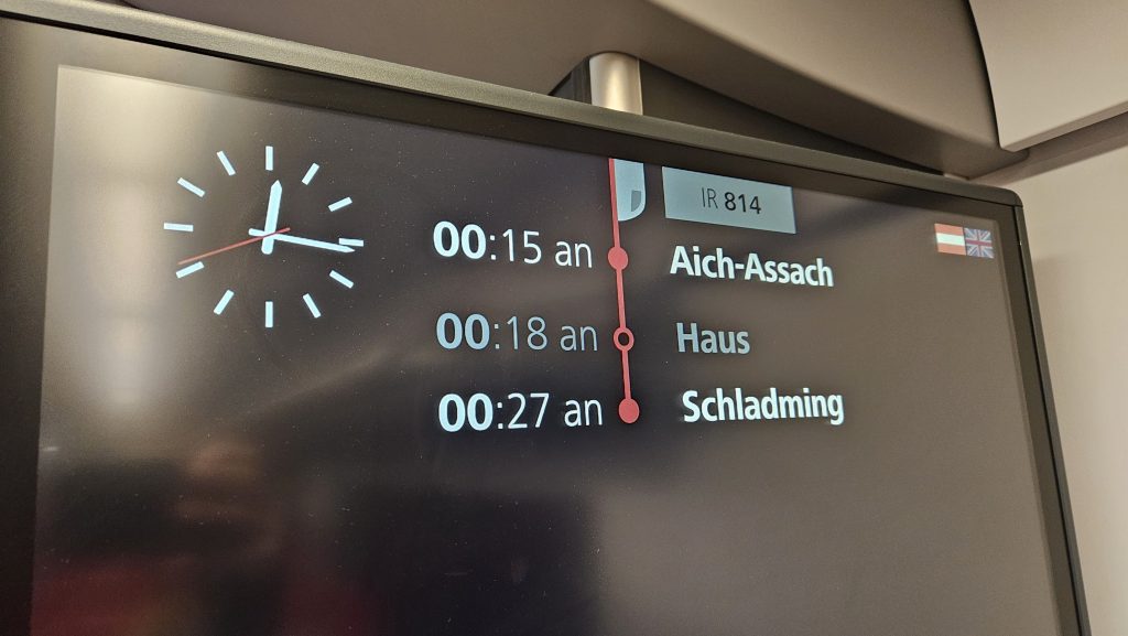 Do stanice Haus im Ennstal jsme dorazili v 0:18. Do apartmánu Alpine Living to byly 3 km pěšky.